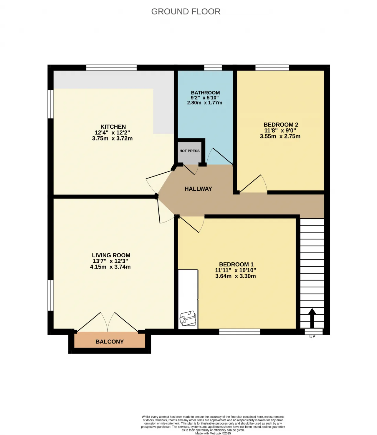 Bedroom 2 3.55m x 2.75m Double bedroom to the rear with laminate flooring.