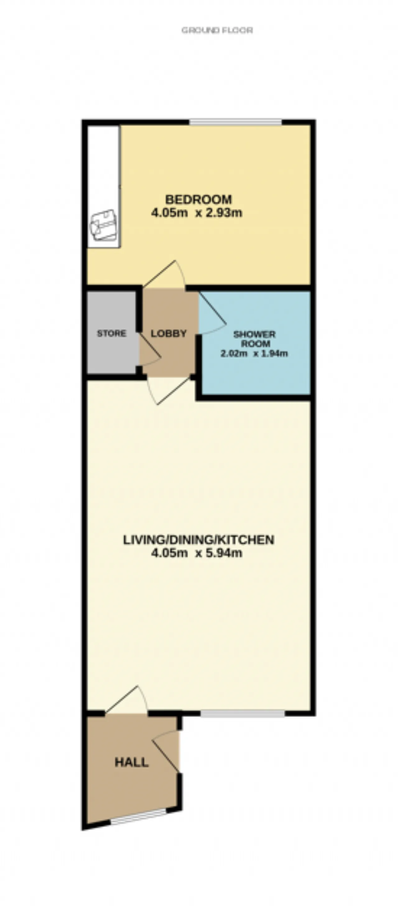 Accommodation comprises an entrance hall, communal living/dining and kitchen, lobby with storage, shower room and the double bedroom to the rear with built in wardrobes. To the front there is a gated entrance with a small courtyard which gets the morning sunshine and outside there is communal parking and a green area.