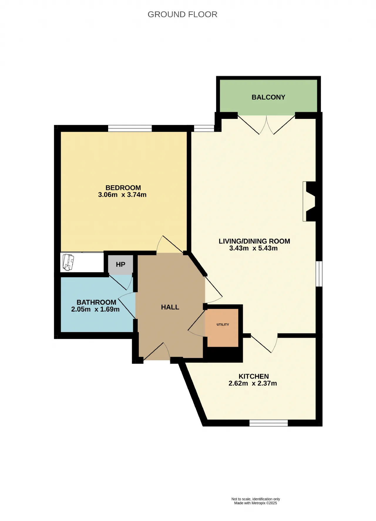 Bathroom 2.05m x 1.69m Tiled, bath with shower, wash hand basin with storage, heated towel rail and wc