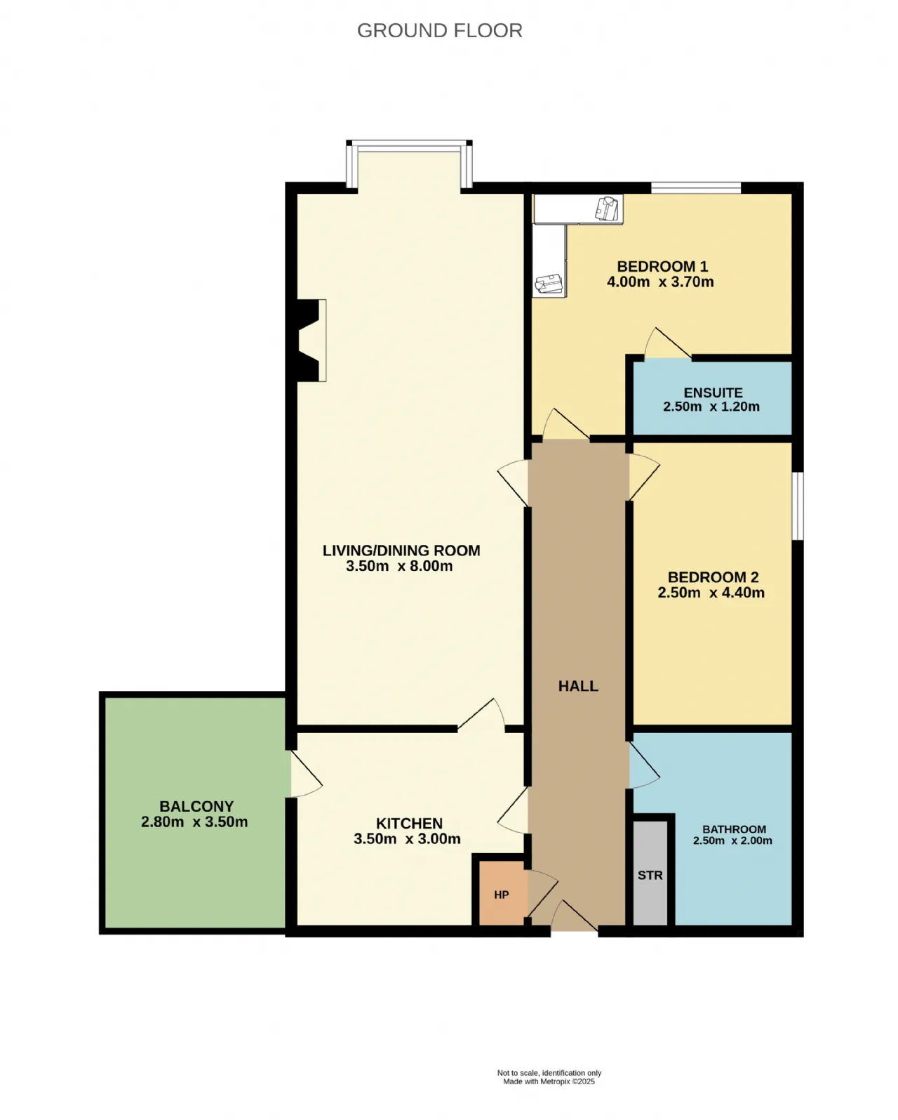 Bedroom 1 4.0m x 3.7m Carpeted flooring with fitted wardrobes and ensuite access.