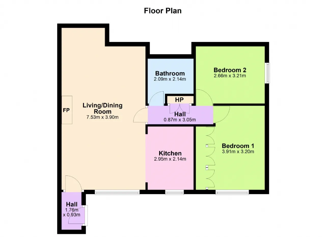 Bedroom 2 2.66m x 3.21m Carpeted flooring and radiator.