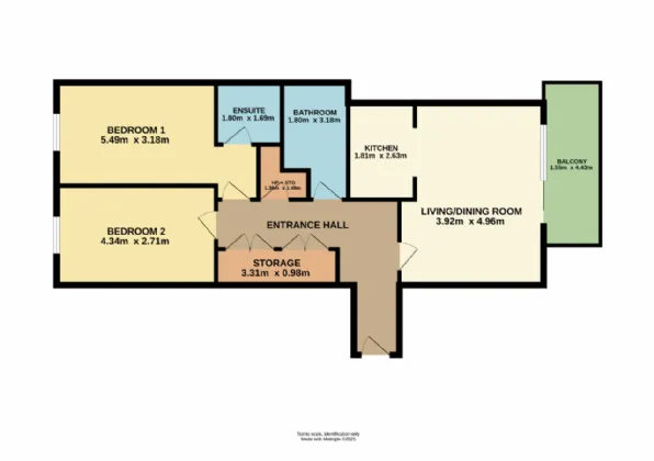 Bedroom 1 5.491m x 3.178m Generous main double bedroom with laminate wood flooring, built-in wardrobes, and ensuite shower room.