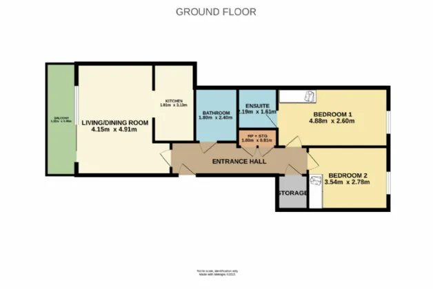En-Suite 1.802m x 1.603m Tiled ensuite shower room with wc, whb, vanity storage and wall mounted mirror.