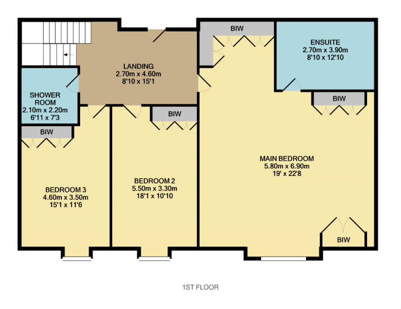Bedroom 3 A third double bedroom with fitted wardrobes and plastered ceiling coving.