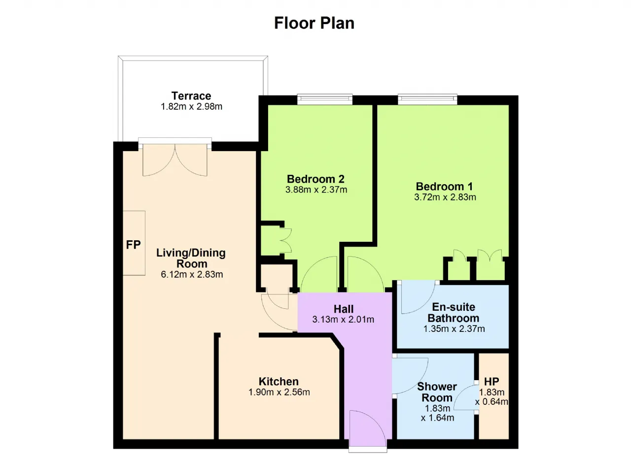 The main bedroom is a generously proportioned double room with built-in wardrobes and a fully tiled en suite bathroom. The main shower room is similarly appointed, incorporating a shower enclosure and a discreet storage cupboard housing the hot water tank.