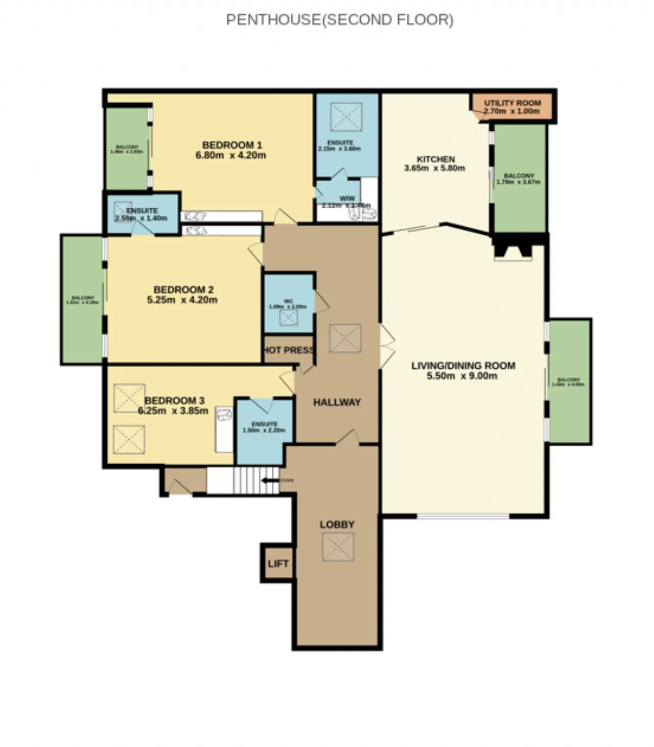 Accommodation briefly comprises; private lobby with the direct, secure lift access along with stairwell to hall, spacious hallway with hotpress and guest wc, open plan living / dining space with balcony over looking the sea, glass doors through to modern kitchen with utility and balcony with sea view, bedroom 1 has a private south facing balcony, walk-in-wardrobe and large, newly fitted ensuite. Bedroom 2 has a private south facing balcony and ensuite. Bedroom 3 has an ensuite too.
