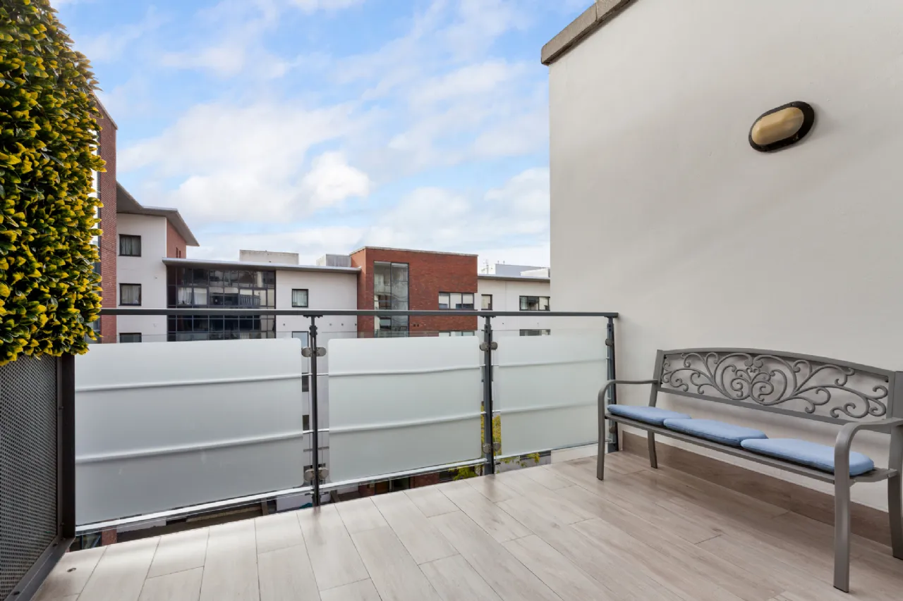Balcony 3.360m x 2.610m Generous balcony off the living/dining room taking full advantage of the bright south-facing aspect, over-looking the communal courtyard below, with a slick wood effect tile finish - a continuation of the floor in the living room - making it a veritable outdoor room.