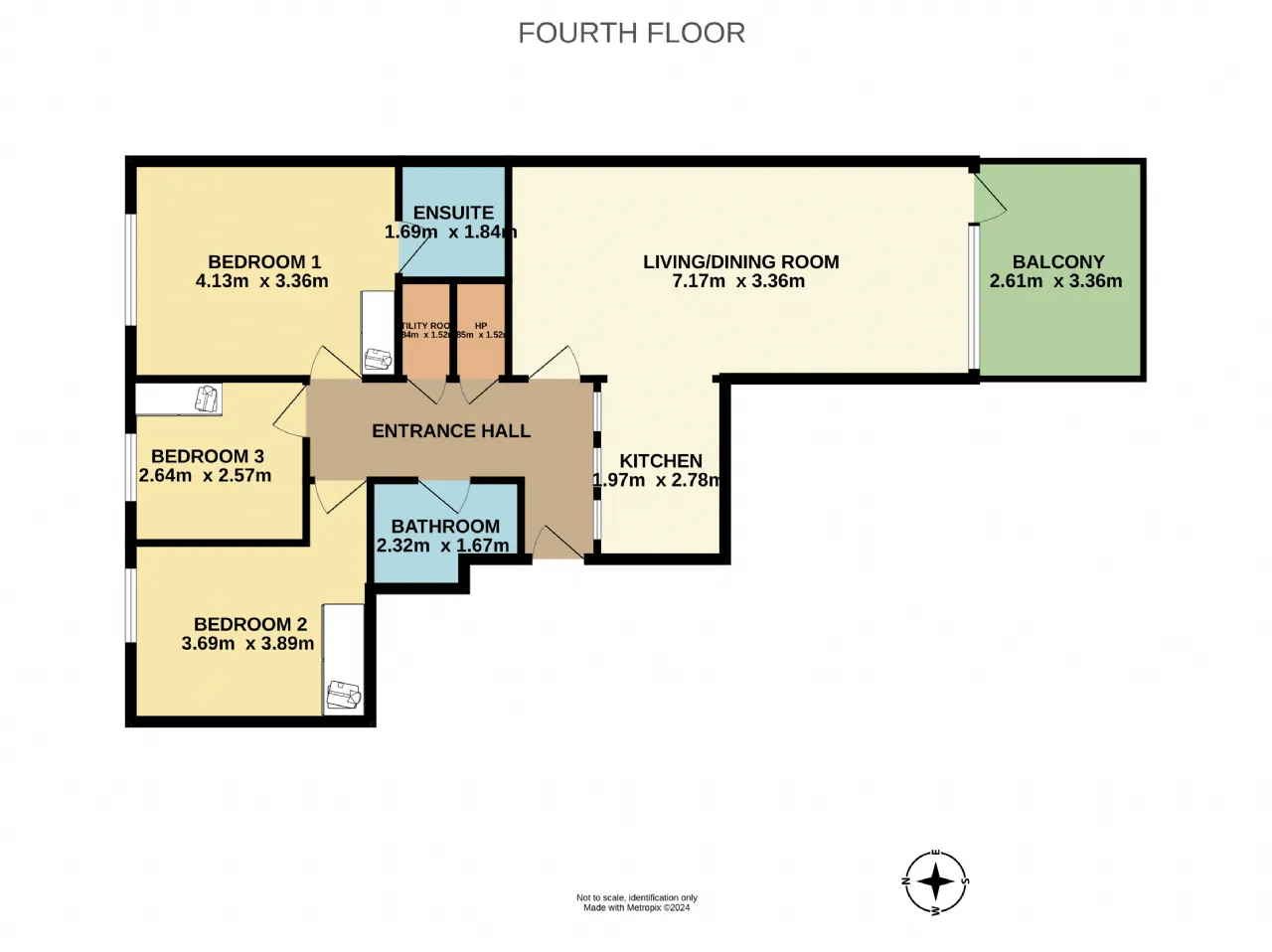 Bedroom 3 2.637m x 2.571m Third and final double bedroom complete with built-in wardrobes and views across the city.