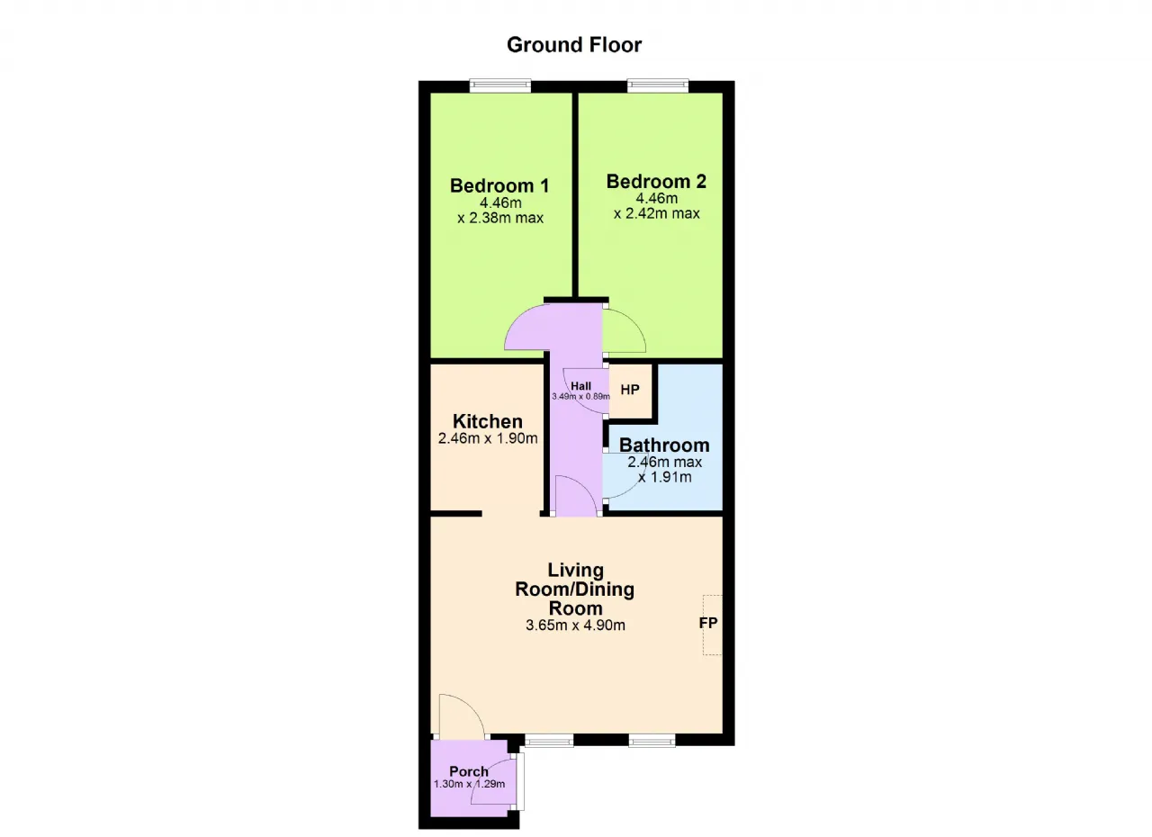 Number 32 is a ground floor unit and measures approx. 63 square meters. This own door apartment comprises briefly entrance porch, living room, kitchen, bathroom and two double bedrooms. The spacious living room is drenched with natural light from two picture windows situated to the front of the property. The property is presented in good decorative order throughout and would be an ideal buy for first time buyers, trade down buyers, as well as investors as it in walk-in condition.