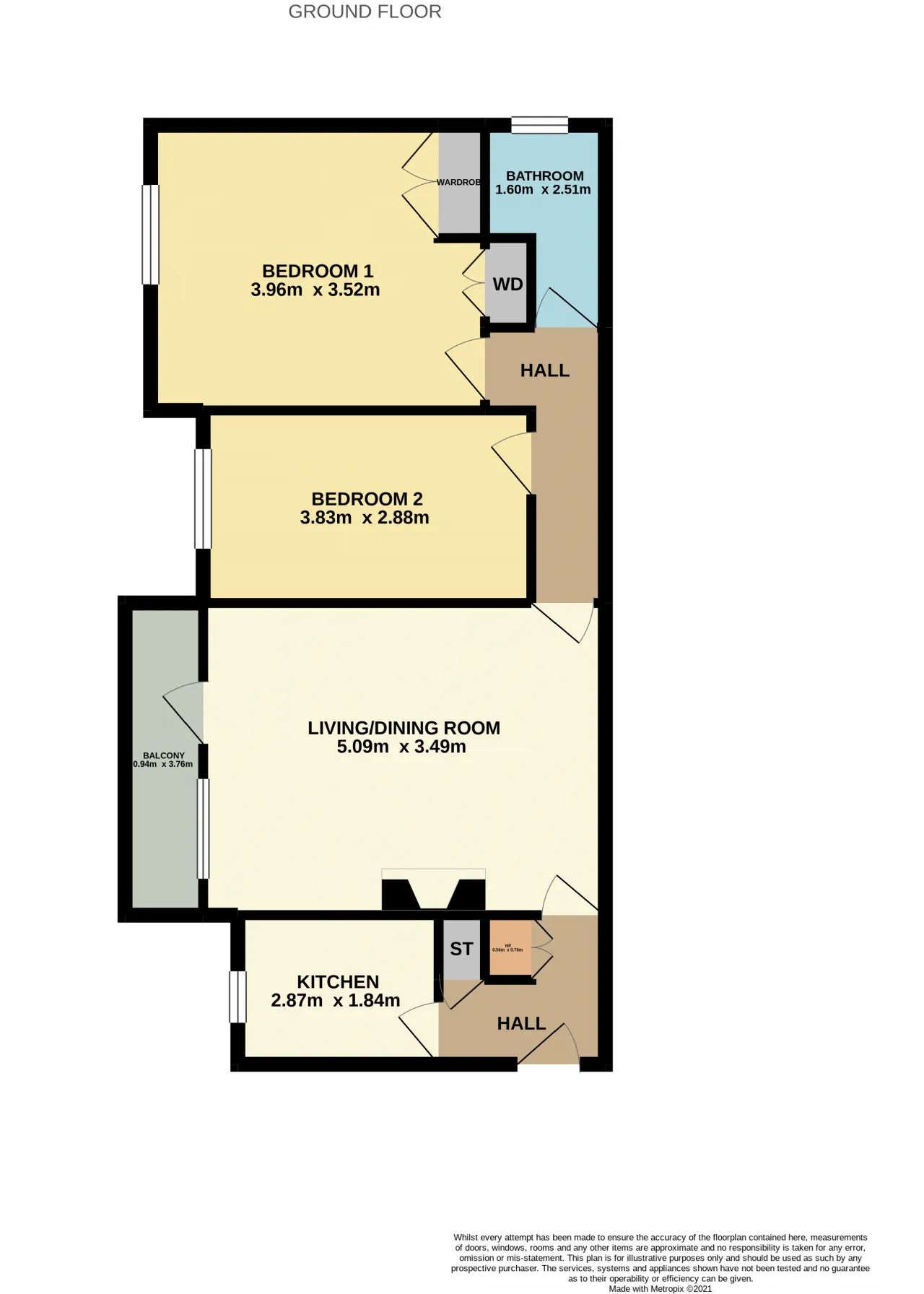 Kitchen 2.87m x 1.84m floor and eye level cabinets, electric cooker and hob, extractor fan, stainless steel sink unit, under counter fridge freezer, provision for washing machine, window to garden