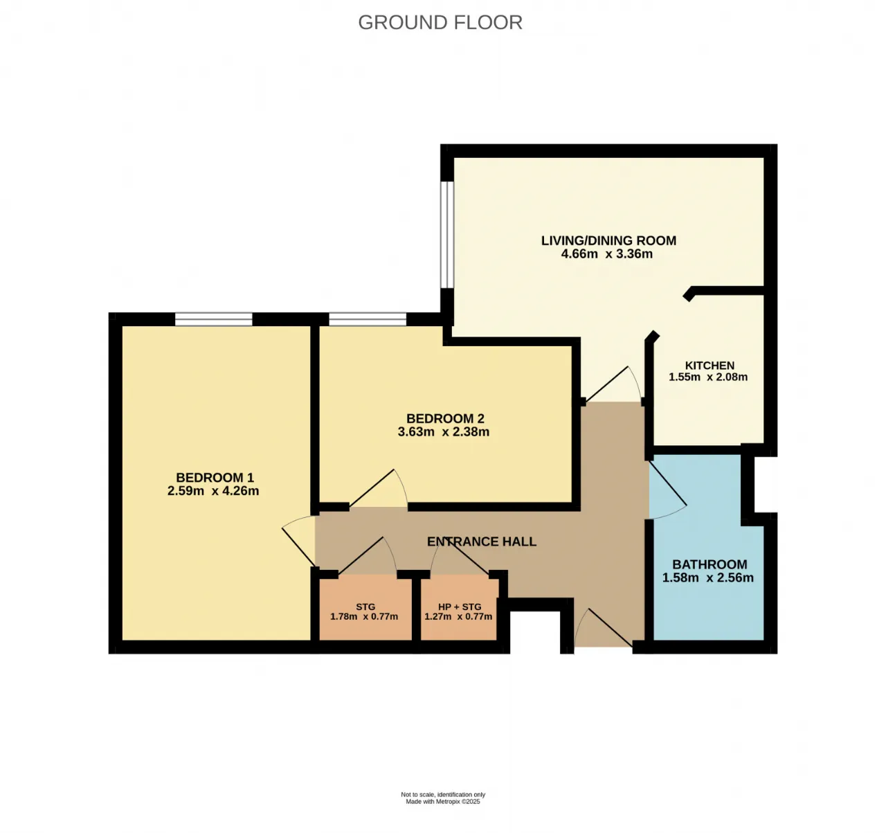 Bedroom 1 2.592m x 4.264m Well sized double bedroom, featuring laminate wood flooring, and views to the communal gardens.