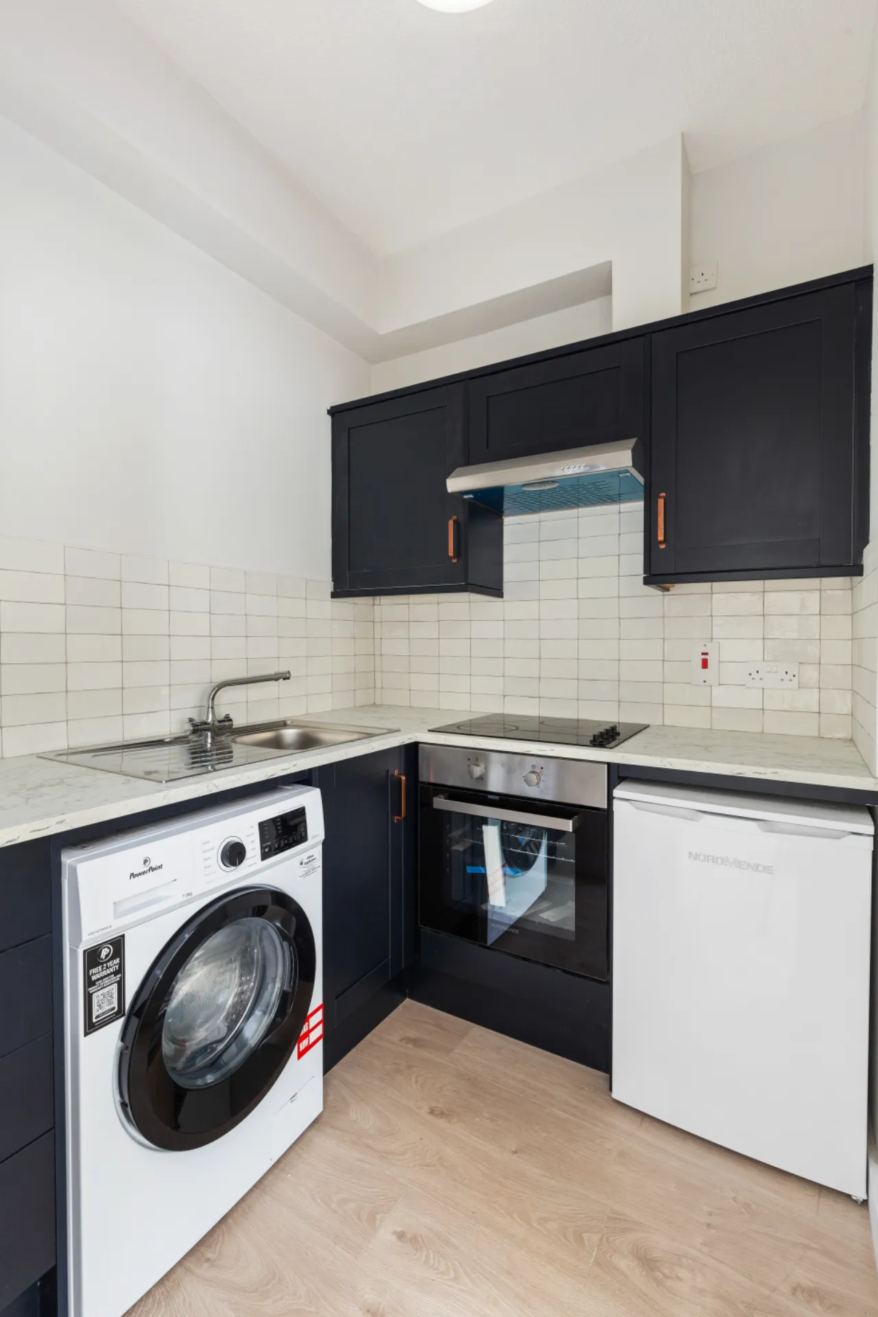 Kitchen 1.554m x 2.082m Well-appointed kitchen off the living/dining area, featuring ample storage with floor and wall mounted cupboards, titled floor and splash back, plumbed for dishwasher.