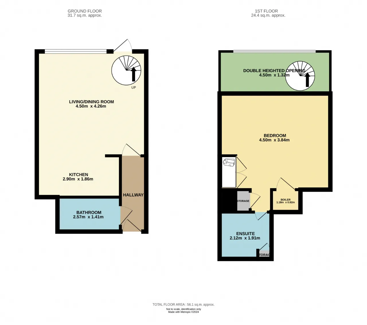 Living/Dining Room 4.501m x 2.262m Bright and spacious open-plan living room with a laminate wooden floor, floor to ceiling windows with access to the outdoor terrace, spiral staircase to the mezzanine bedroom.