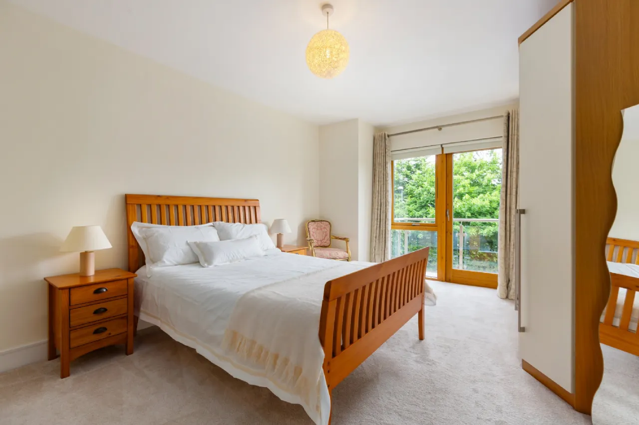 Situated on the first floor, the apartment enjoys a sunny, south-facing outlook over beautifully landscaped communal grounds. One of the standout features is the generous balcony, accessed through floor-to-ceiling windows in the living area. Thoughtfully reconfigured with doors that open onto the balcony feels like a natural extension of the living space—perfect for relaxing or entertaining.