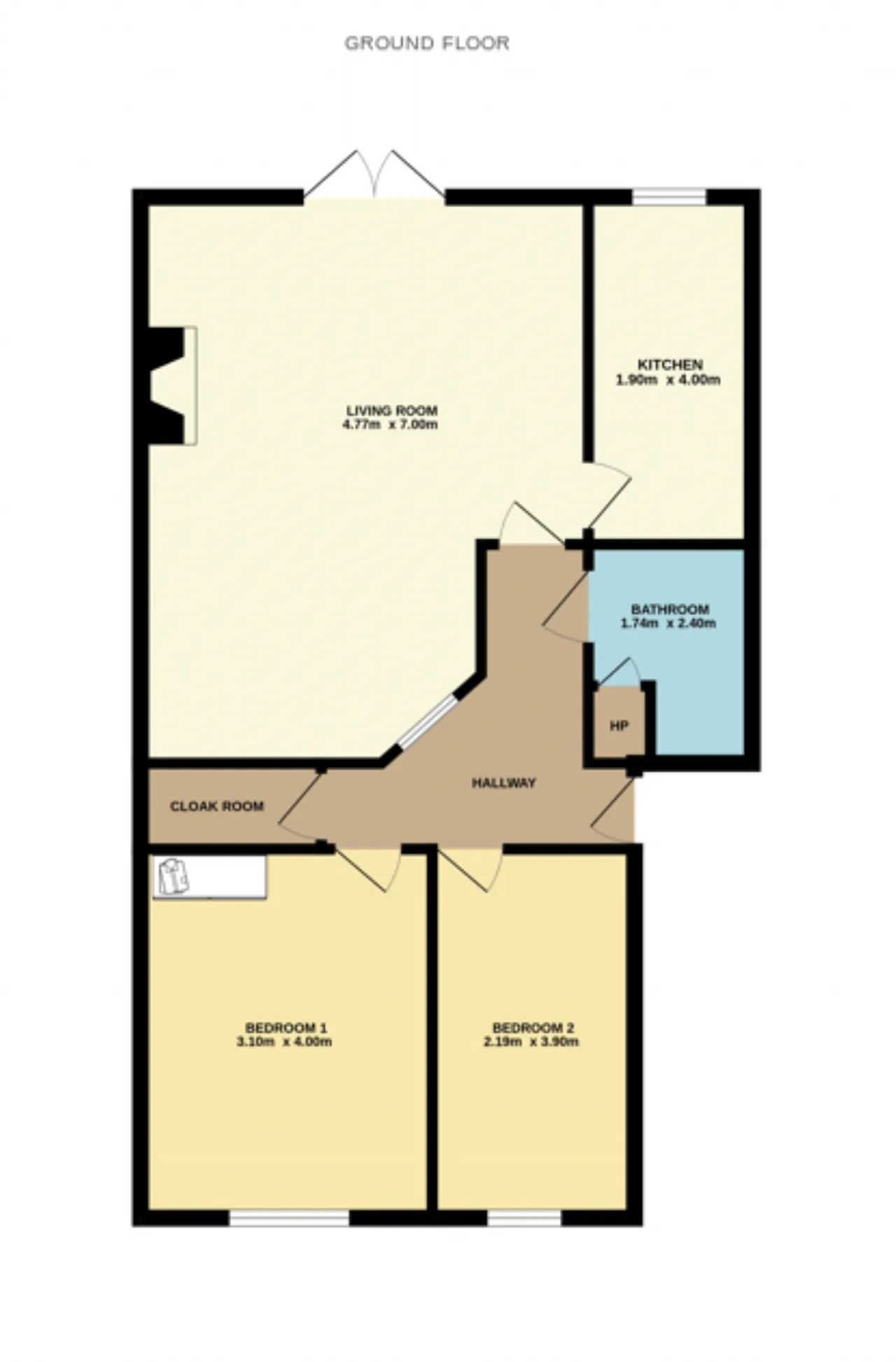 Bedroom 1 4.00m x 3.10m Double bedroom with carpet flooring, fitted wardrobes and window to front.