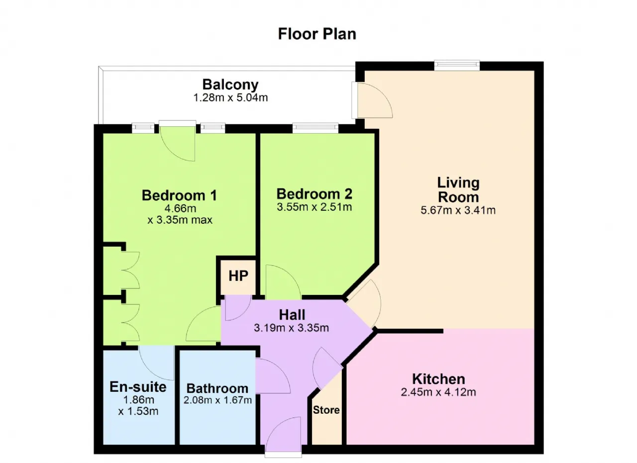 Bedroom 1 4.66m x 3.35m Double bedroom with wood flooring, built in wardrobes and access to balcony.