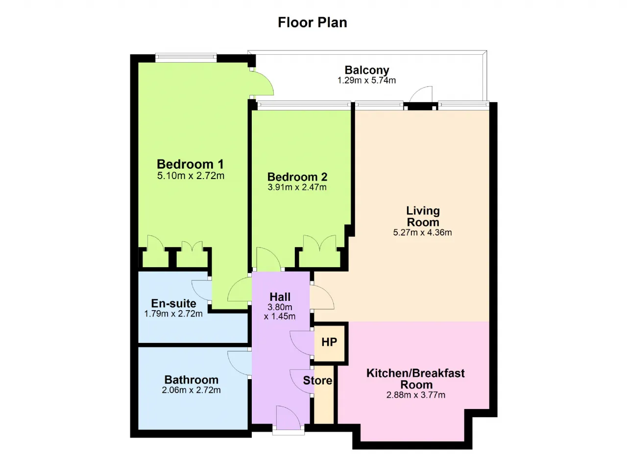 Bedroom 1 5.10m x 2.72m Double bedroom, dark oak wood flooring, recessed lighting, built in wardrobes and door to balcony.