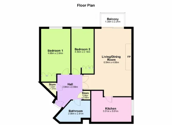 Living Room/Dining Room 6.54m x 4.66m Spacious living space with wood floor, open fireplace and access to balcony.