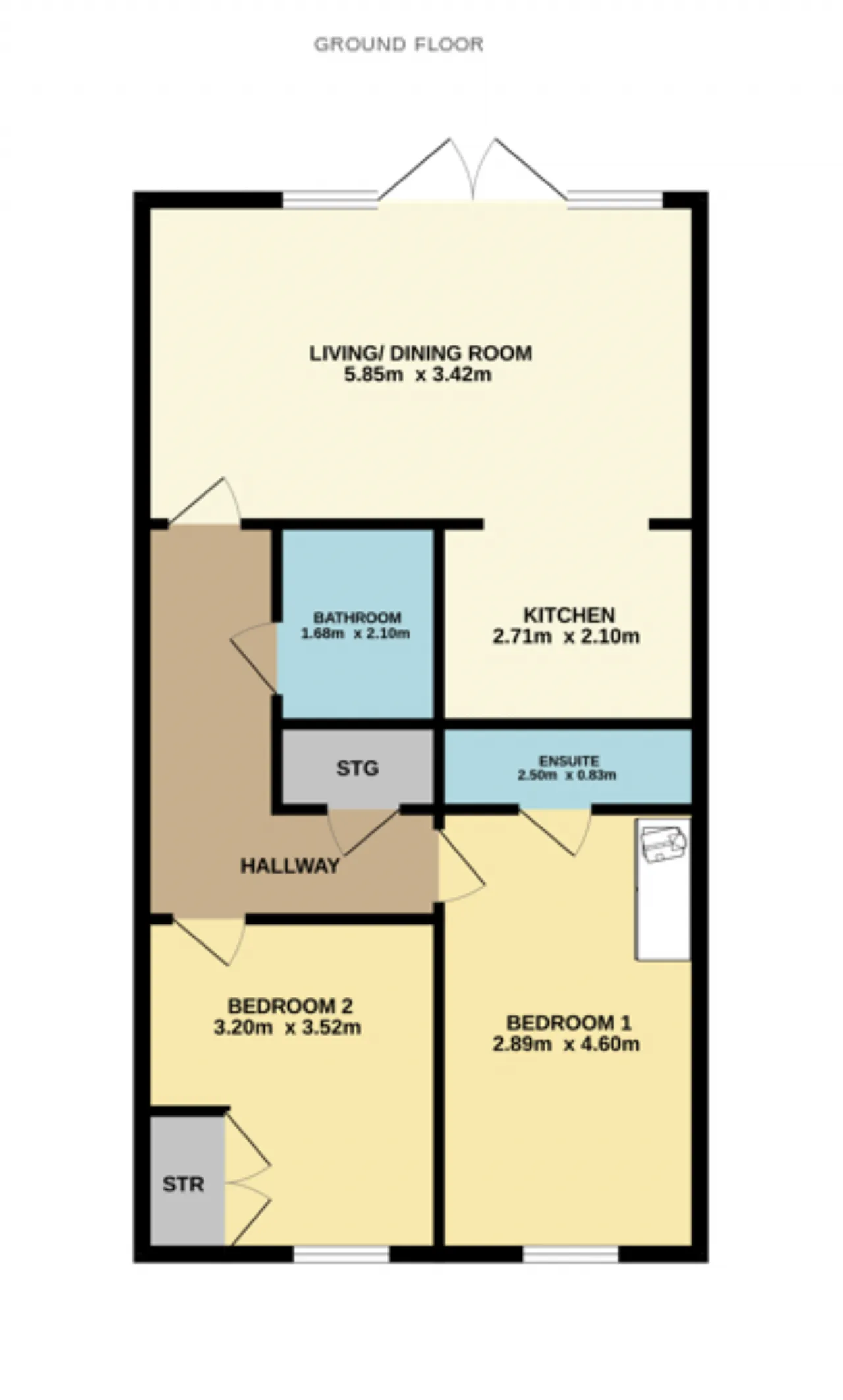 Bedroom one: 2.89m x 4.60m large double bedroom with carpet flooring, built in wardrobe and en-suite.