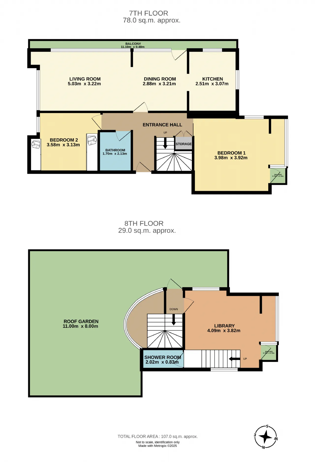 Shower Room 2.017m x 0.832m Neat shower room off the library, fully tiled with a wc and whb.