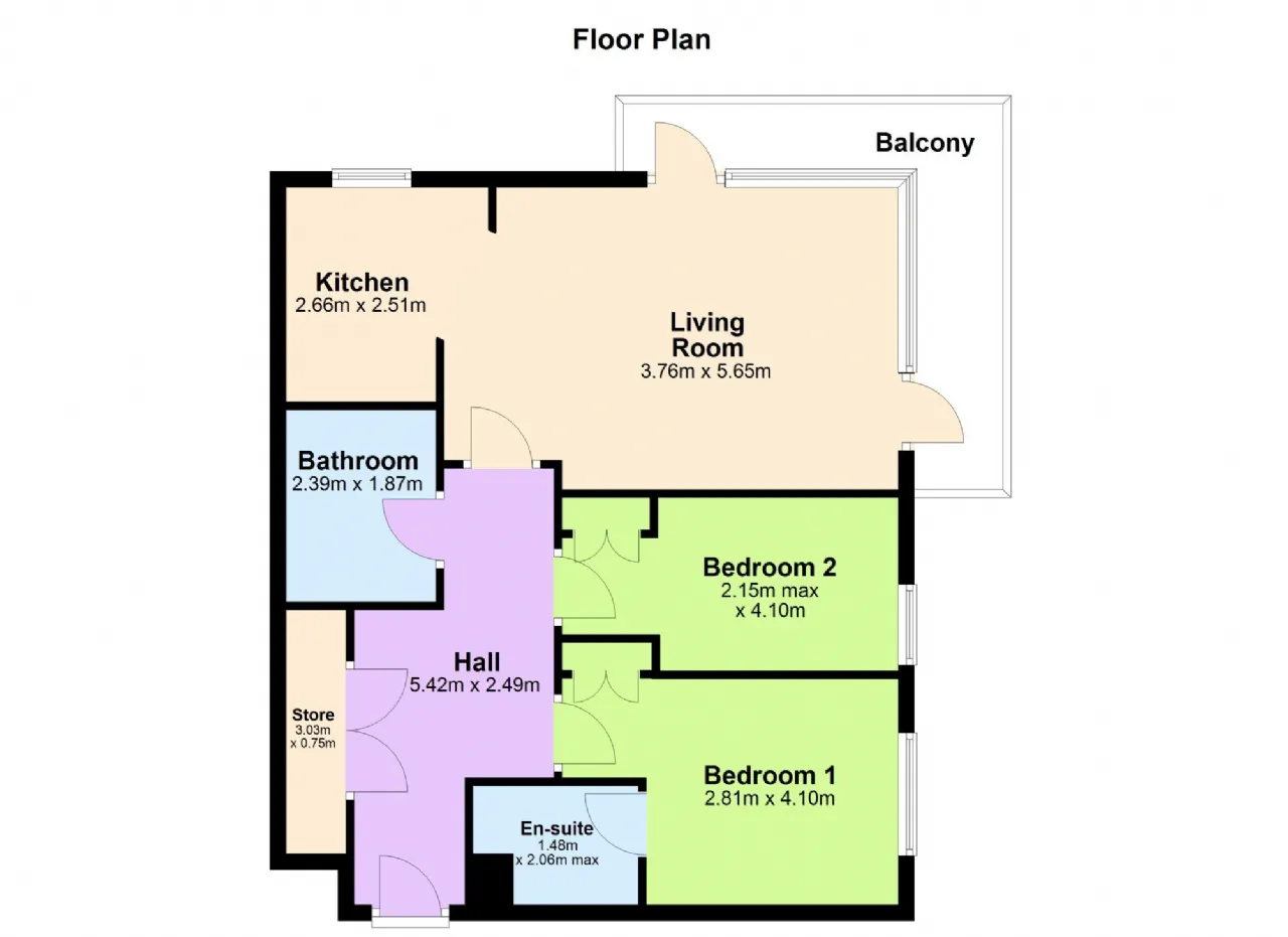 Extending 67 sq.m / 721 sq.ft (approx.), the well configured accommodation briefly comprises a welcoming entrance hall providing excellent storage, a bright and spacious open plan living/dining room offering access to the balcony. The kitchen is well equipped with fitted integrated appliances and a window. There are two bedrooms complete with built-in wardrobes, with one benefitting an en-suite shower room whilst the main bathroom completes the accommodation.