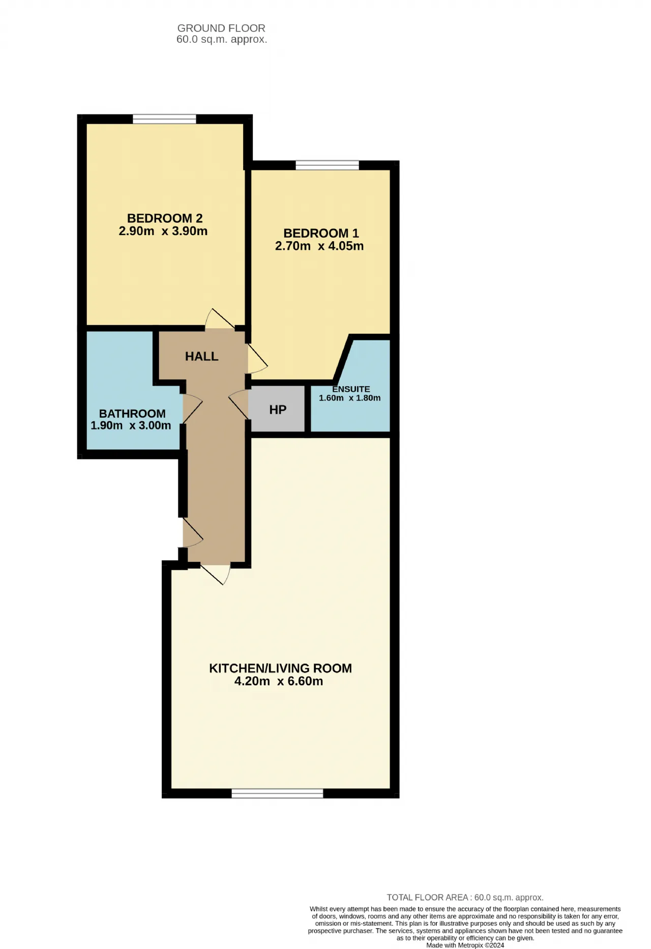 En-Suite: Fully tiled, WC, wash hand basin, shower.