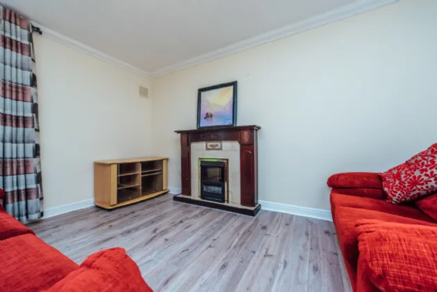 Living/Dining Room 6m x 4.12m This is a bright room with a large window overlooking the gardens. It features a laminate oak floor and a fireplace in mahogany with electric fire.