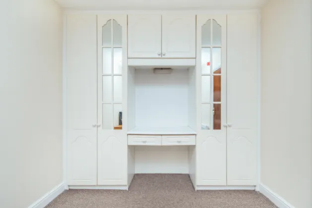 Bedroom 1 3.6m x 3m This is a spacious double bedroom to front. It includes fitted wardrobes, dressing table and a carpet floor.