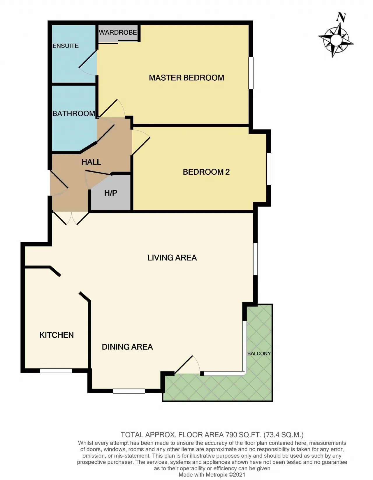 with a picture window and access to a spacious wraparound balcony, kitchen, two large double bedrooms (master with en-suite) and a family bathroom.