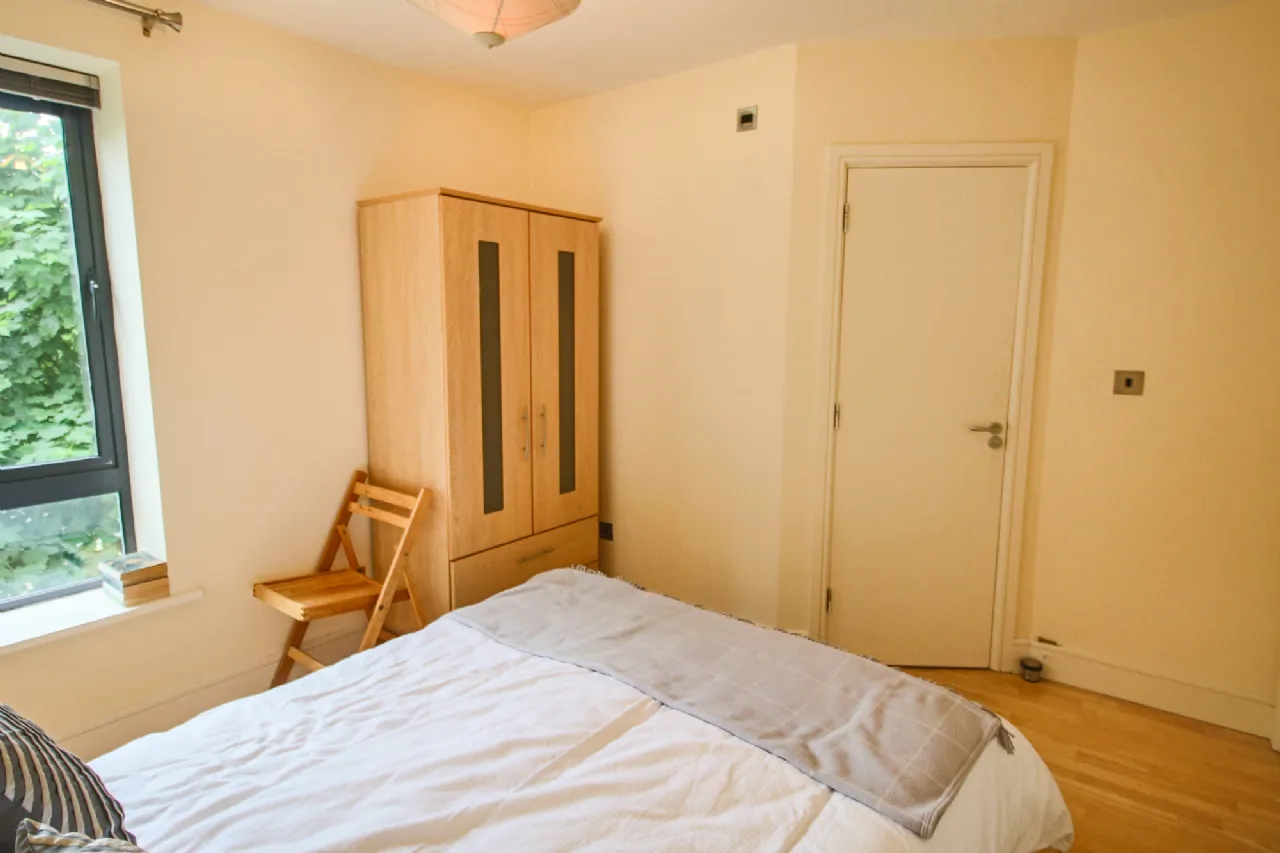 Bedroom 2 3.61m x 2.62m Double room with access to balcony area. Wood flooring, curtain pole & drape, Dimplex panel heater.