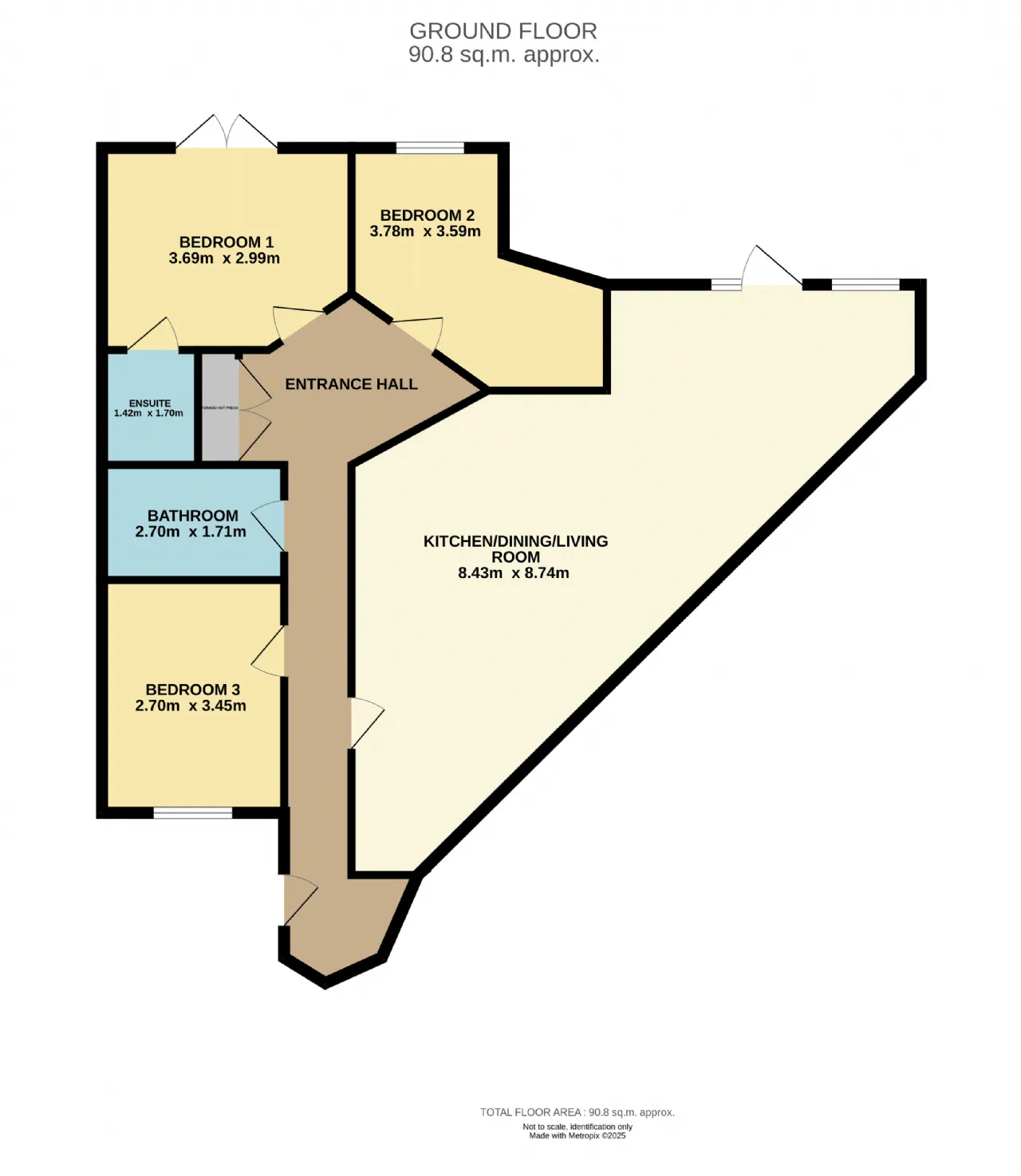 Accommodation: Ent Hall, Living, Kitchen/Dining Room, 3 Bedrooms (3 double), 2 Bathrooms (1 En suite).