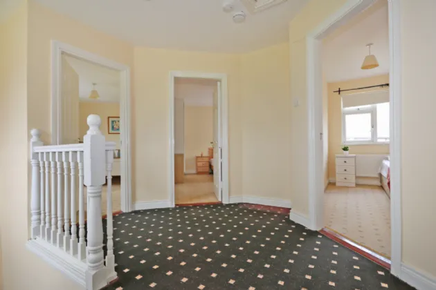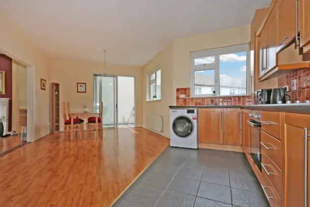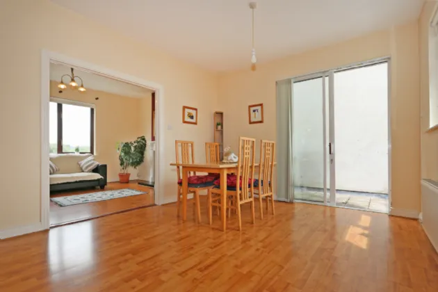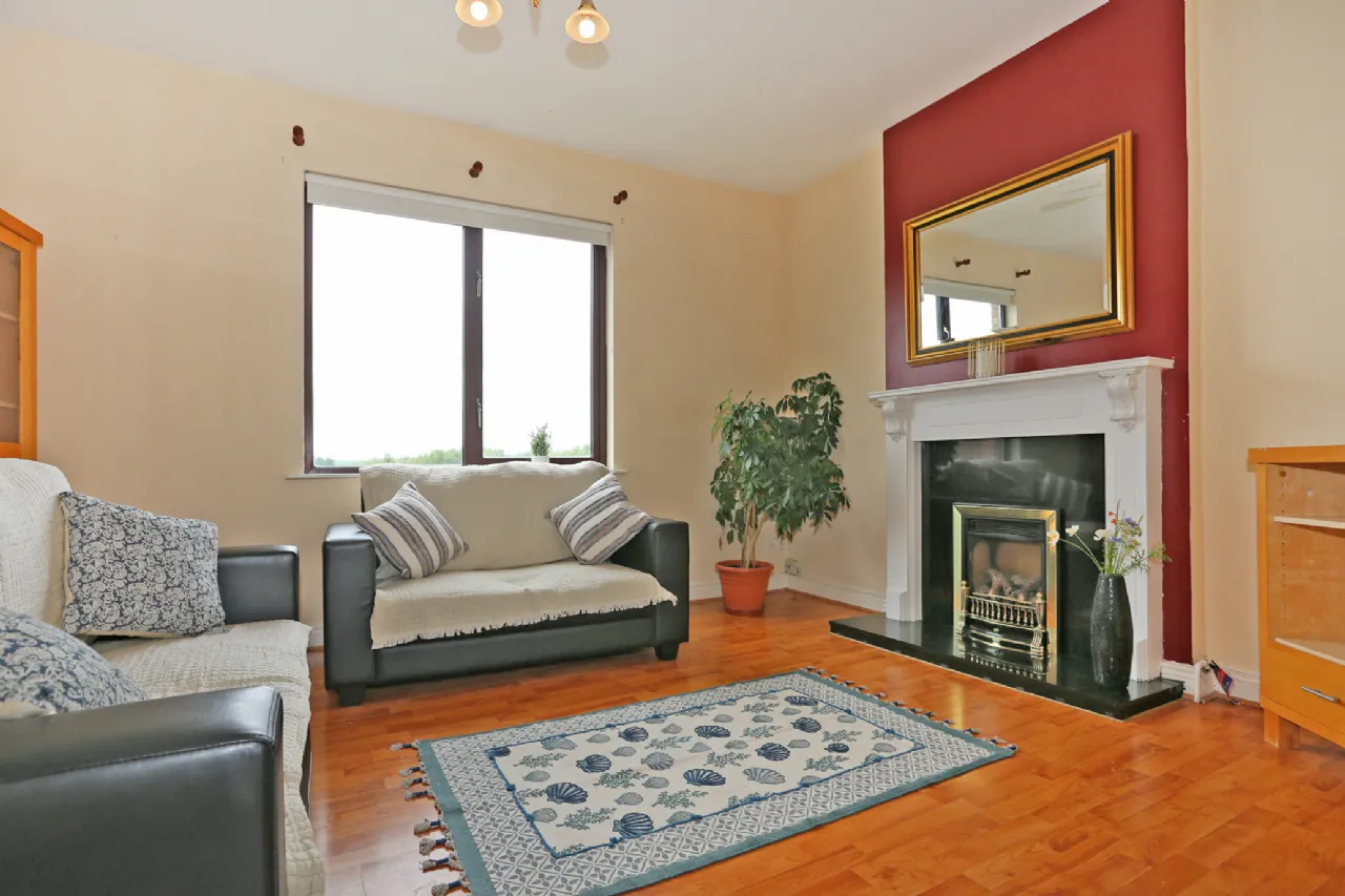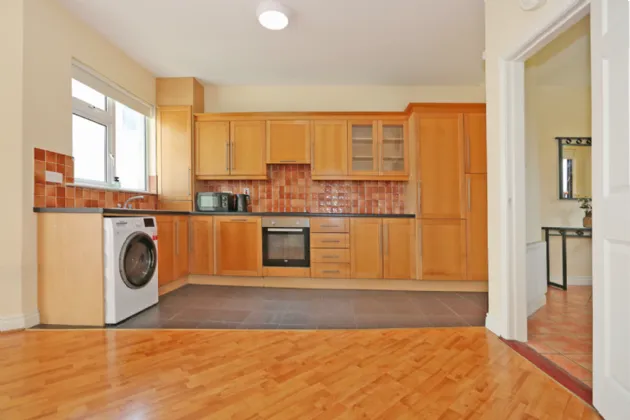 The interior design maximises the space afforded and the well lit accommodation is immediately evident on entering the hall door. With a bright, wide entrance hall welcoming you to the property, there is a living room to the left side with views over a green and double door opening to the kitchen/diningroom. This is a superb space with plenty of room for cooking and entertaining, with sliding doors out to an enclosed patio balcony which spans the width of the property, ideal for sitting out and with enough room for patio tables and chairs.