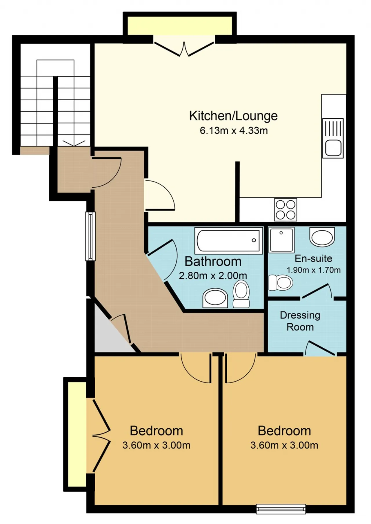 Situated walking distance from the Main Street of Ballymahon but with a distinctively country feel, this courtyard development looks out onto the River Inny. The courtyard is coble locked paved with some mature trees and provides ample car parking. The apartment is a corner unit on the first floor with it’s own door access and external stairway.