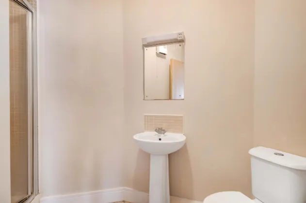 En-Suite Large en-suite with tiled shower area, splash back and floor, mirror over sink