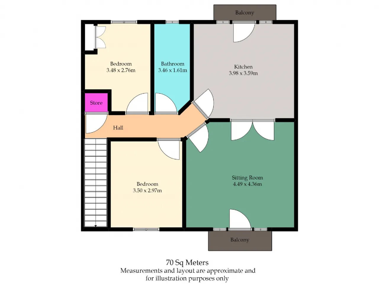 The accommodation is roomy, has good storage space, 2 double bedrooms and features two small balconies to capture both morning and evening sun.