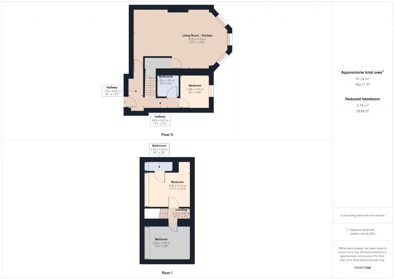 Kitchen Living Room 8.33m x 5.10m Kitchen area is tiled floors with fully fitted kitchen. Living room is bright and airy with lots of natural light and carpet flooring.