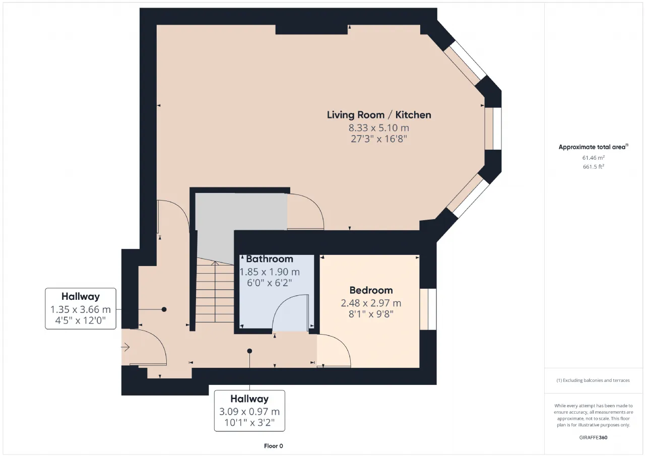 Hallway 3.09m x 0.97m Carpet floors.