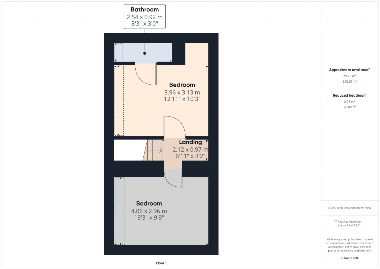 Landing 2.12m x 0.92m Carpet floors.