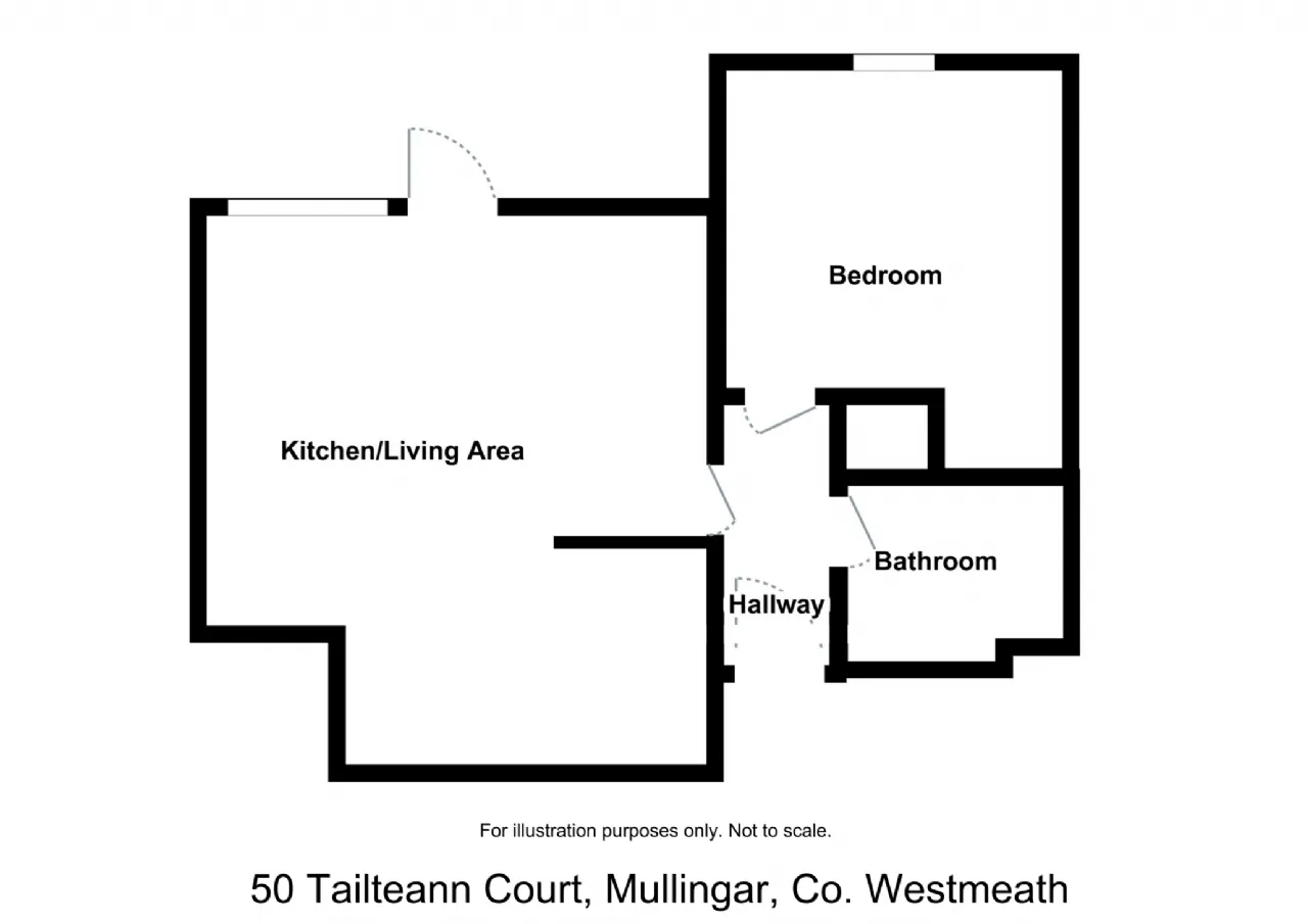 Beautifully maintained and presented in excellent condition, this apartment features a welcoming entrance hall with tiled flooring, leading to a generous open-plan kitchen/living area with a fully fitted kitchen, tiled floors, splashback tiling, and access to a private balcony. A spacious double bedroom with built-in wardrobes and a fully tiled bathroom with three-piece suite complete the accommodation.