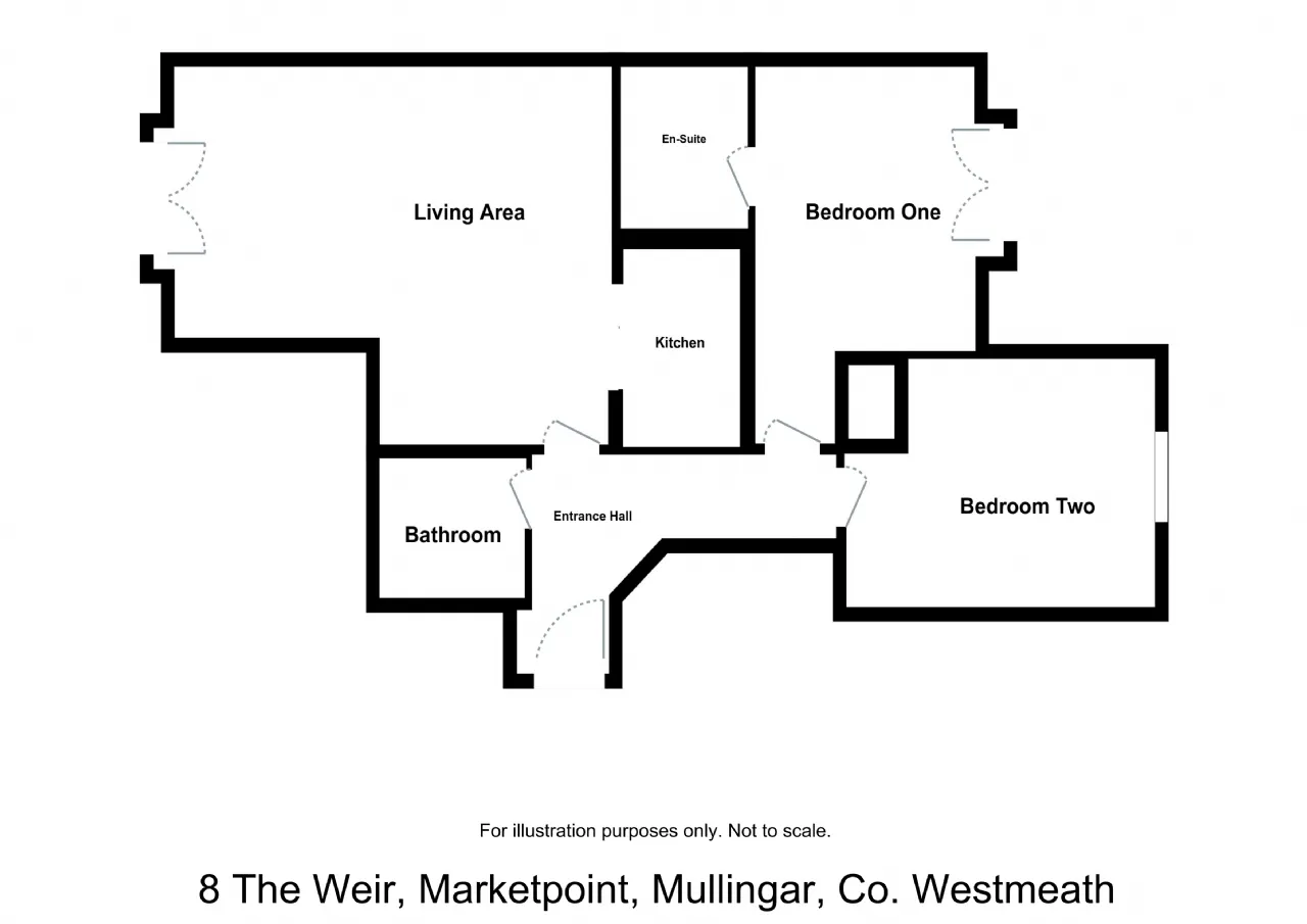 The main bedroom benefits from direct balcony access, and includes an en-suite bathroom with a tiled shower cubicle, WC, and wash hand basin. The second bedroom, also spacious, features built-in wardrobes. A modern main bathroom, fully tiled and fitted with a bath and pump shower, completes the accommodation.