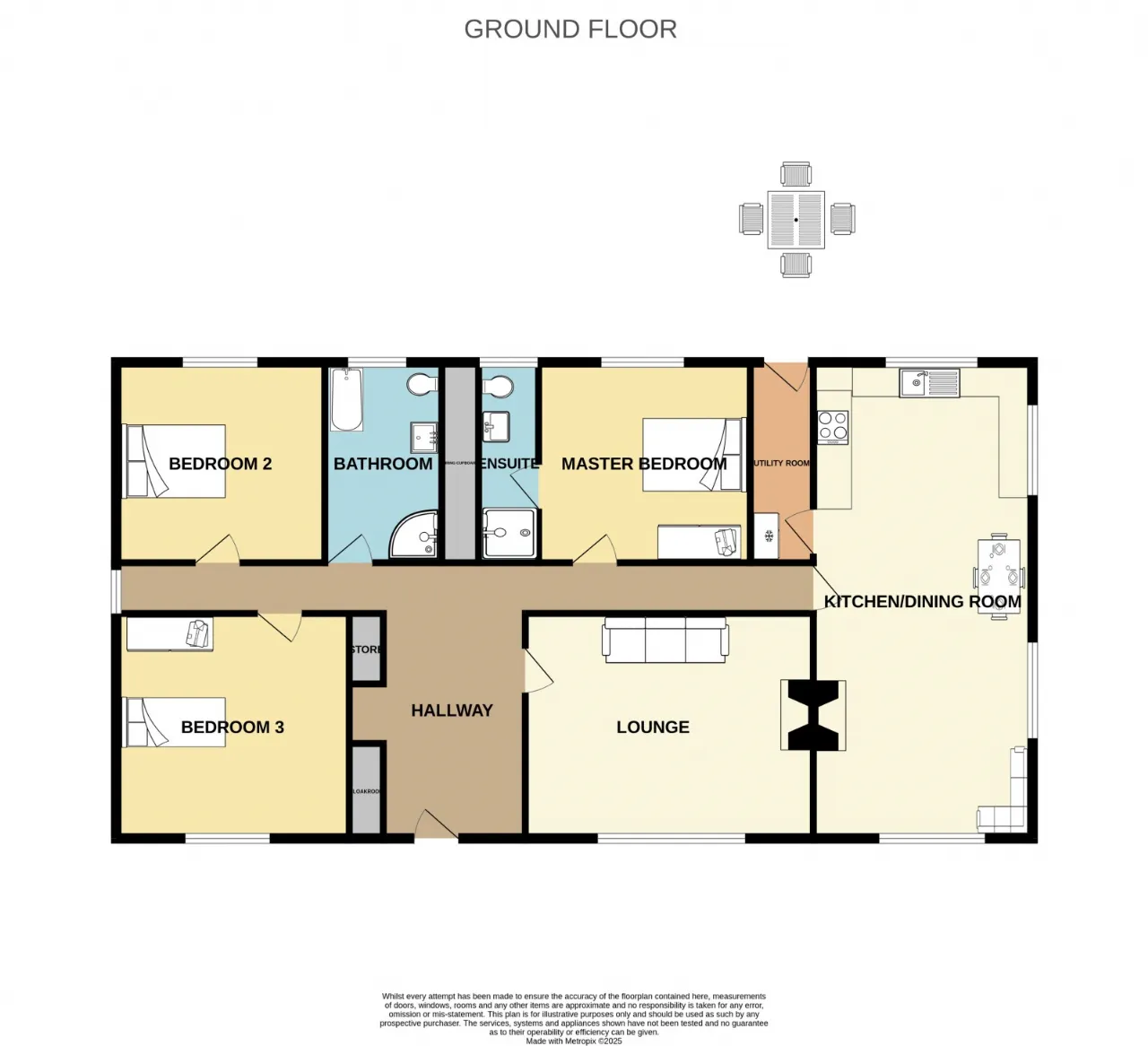 En-Suite 1.466m x 2.695 Toilet. Cubicle shower. Vanity sink unit. Heated towel rail. Wall mirror light. Tiled floor and walls. Blind.