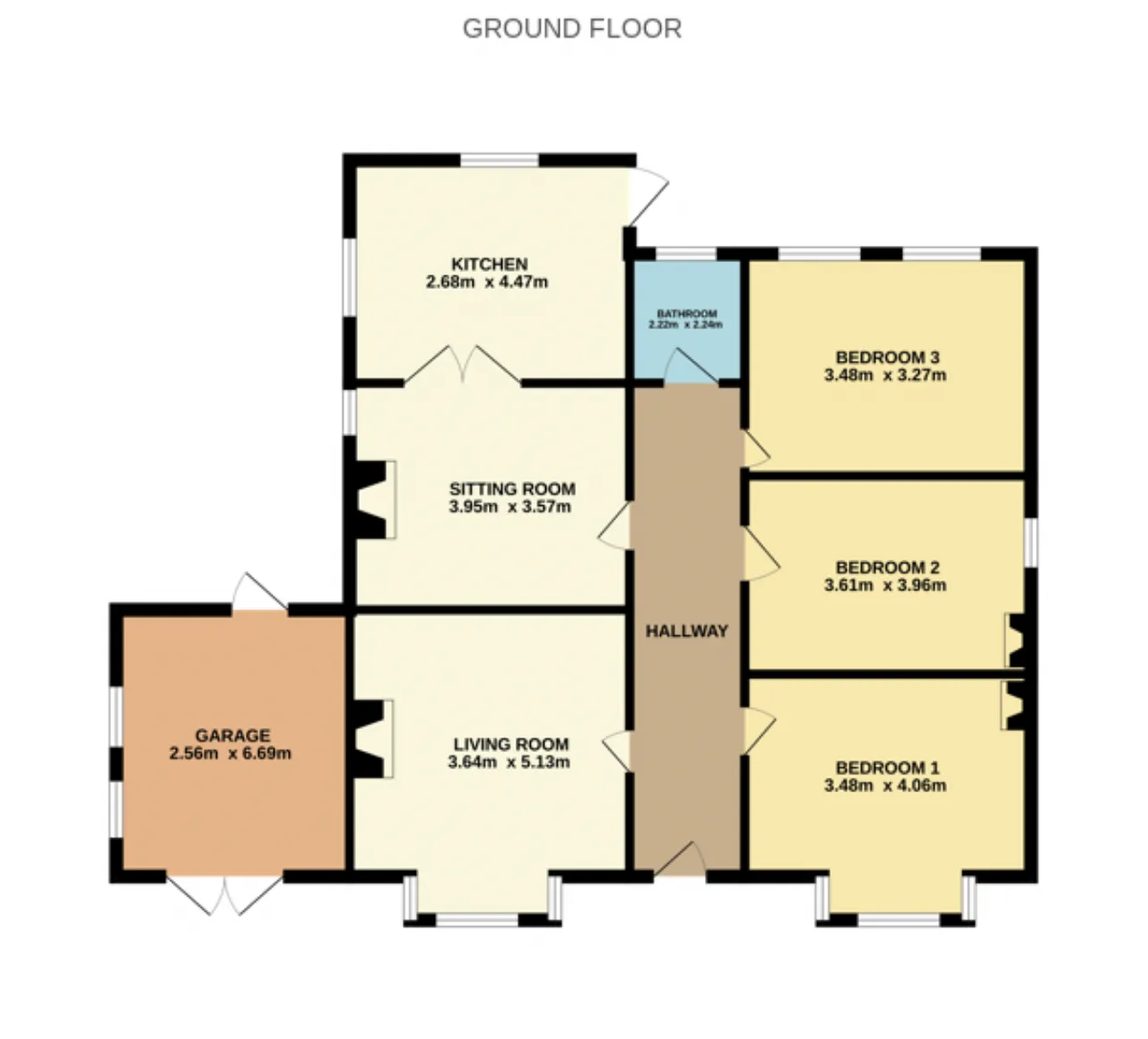 Bedroom 3 3.48m x 3.27m Carpeted bedroom positioned to the rear of the property.