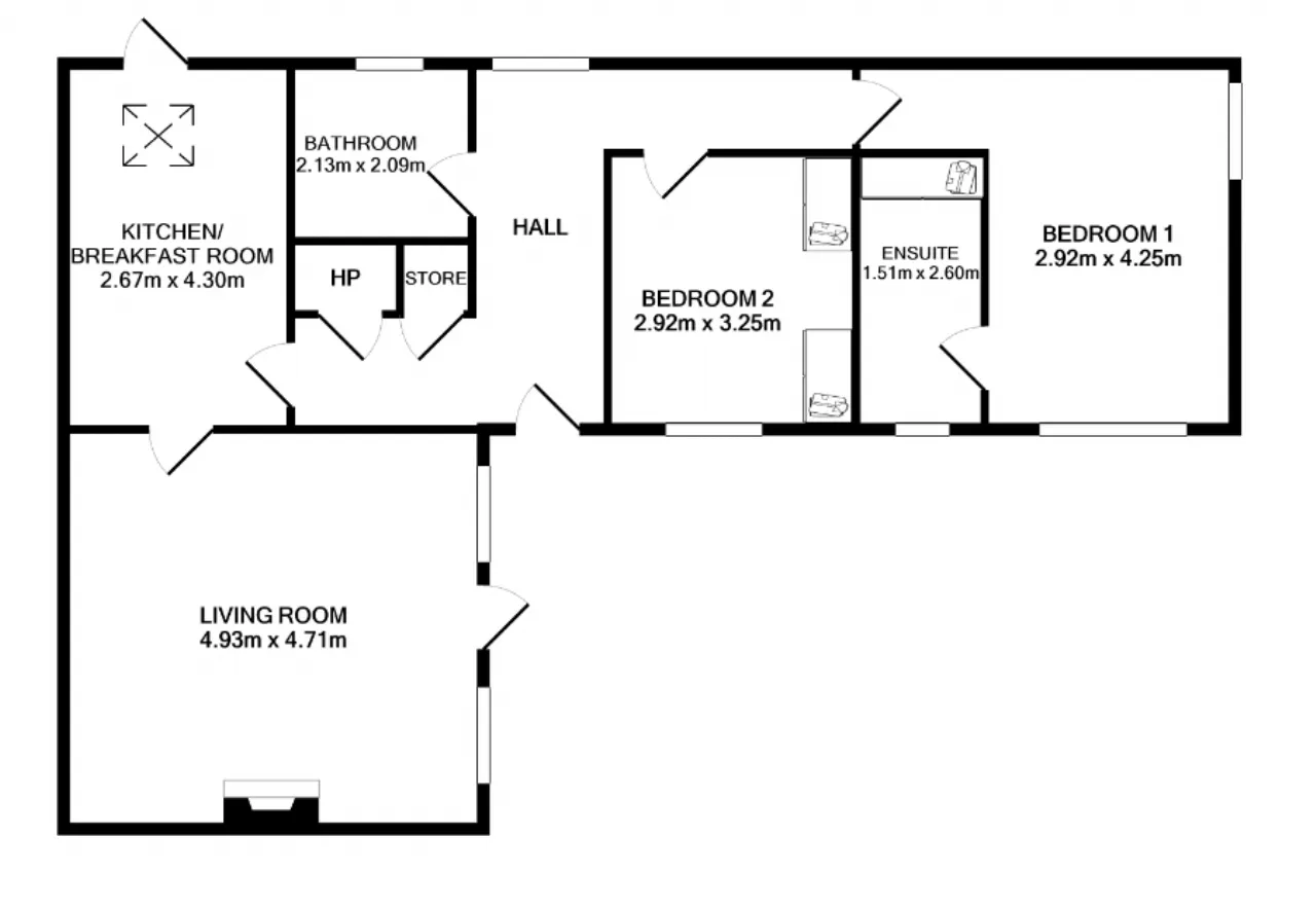 A garden gate leads through to the attractive 2 bedroomed bungalow and comprises of an open plan living /dining room leading to a kitchen breakfast room off. The attractive walled garden can be accessed off the living room, an ideal area for al fresco dining. Down the hallway, there are two double bedrooms, the main of which enjoys a shower ensuite. A family bathroom completes the accommodation.