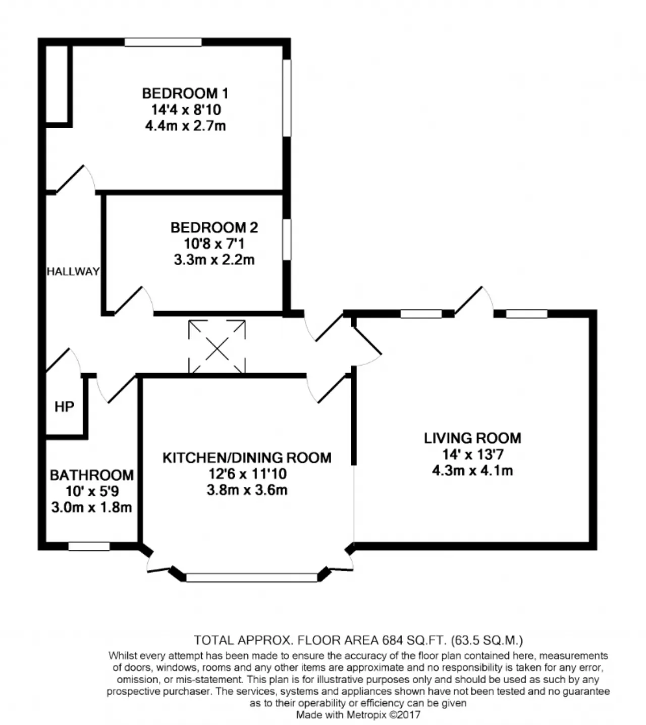 Bedroom 1 4.4m x 2.7m Double room with fitted wardrobes, two windows allowing lots of natural light, sink, ceiling coving and spot lighting.