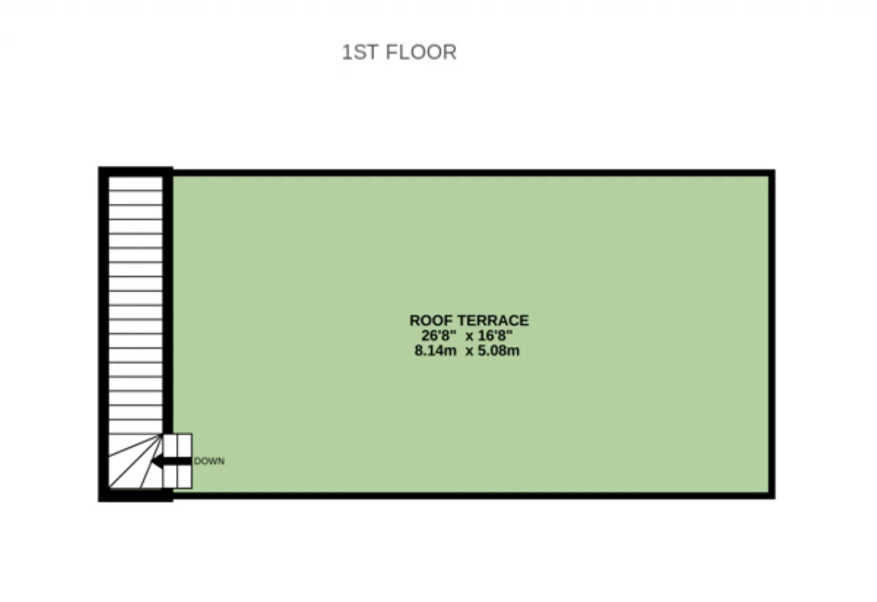 Rooftop Terrace 8.14m x 5.08m Accessible via stairs from the rear, this expansive decked area provides a superb outdoor space for entertaining, relaxation, and enjoying elevated views.