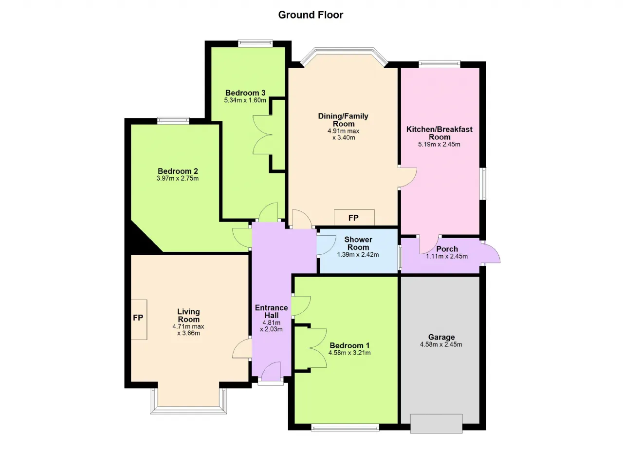 Kitchen/ Breakfast Room 5.19m x 2.45m Long room to side of house. Lino flooring, fitted units, plumbed for washing. Step down to porch. Access to garage