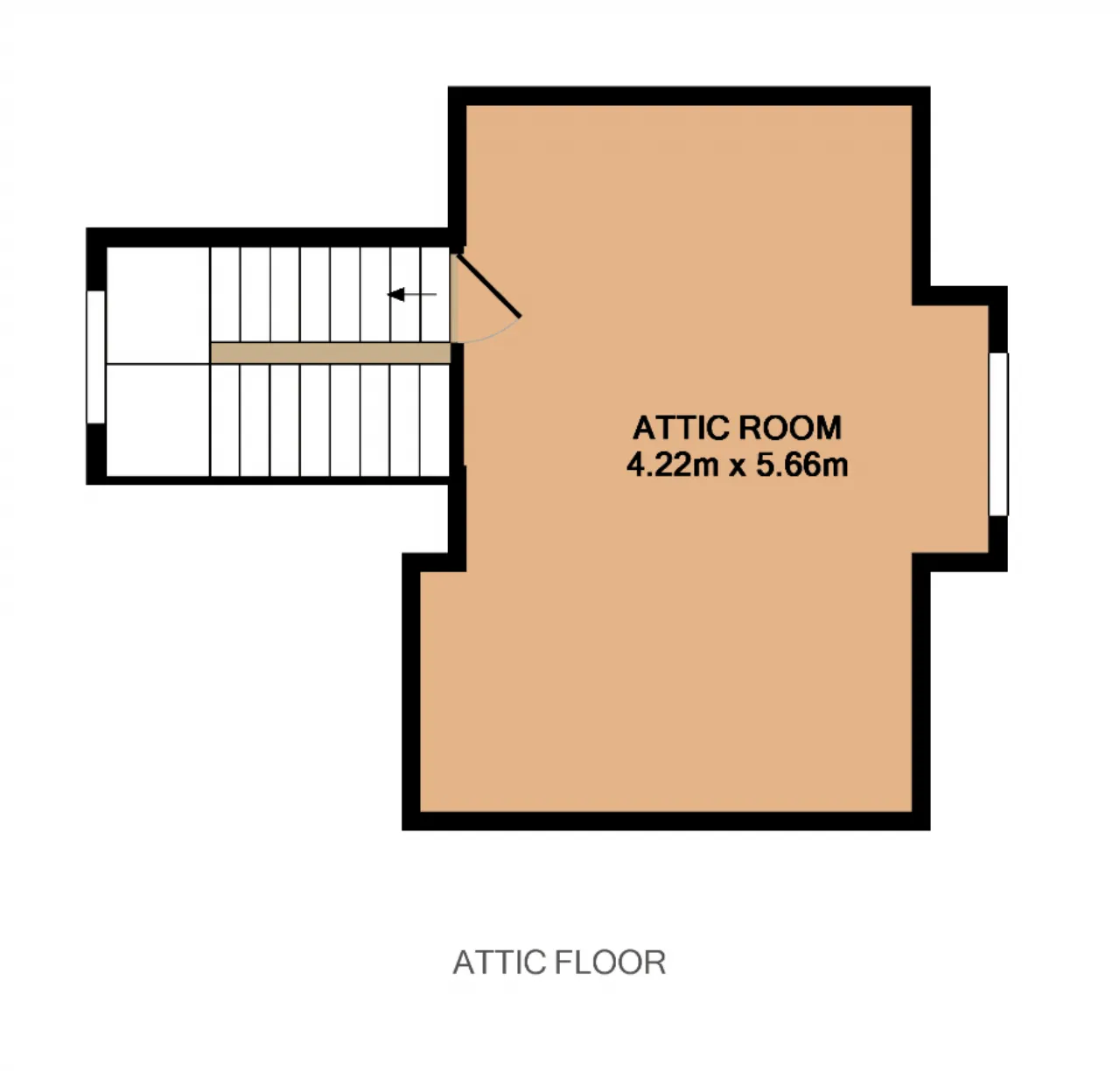 Attic Room 3.61m x 5.66m currently in use as a bedroom with under eaves storage, wash hand basin, storage cupboard and nice outlook towards the city.
