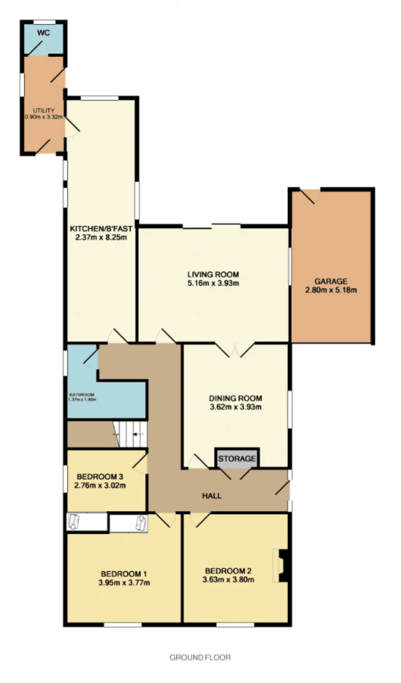 Utility Room 0.90m x 3.32m door out to garden and side entrance