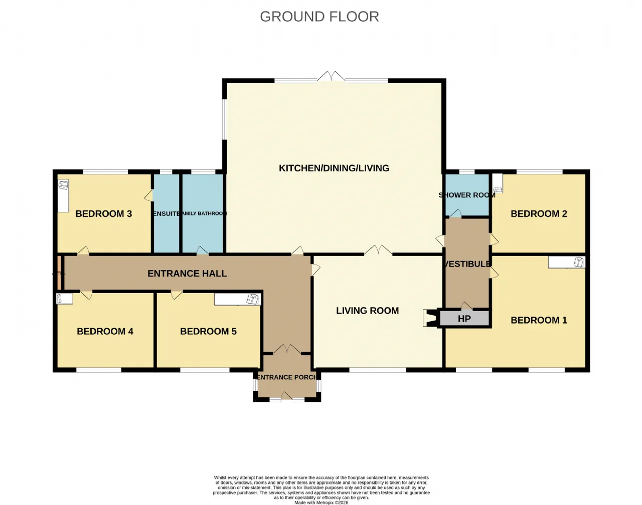 Kitchen/Dining/Family 7.97m x 6.37m Magnificent fitted kitchen Cooke & Lewis cream style classic framed floor & wall units with integrated oven and microwave (installed late 2025), ceramic hob with stainless splashback and extractor fan. Built-in dishwasher. Upright fridge freezer (installed 2024). New washing machine (installed late 2025). L shaped breakfast bar with double Belfast sink. Two zones of downlighters over family area. Coving on ceiling. Fully tiled floor in "Savona" cream non-slip 60 x 60 tiles. French doors leading to new Stone patio.