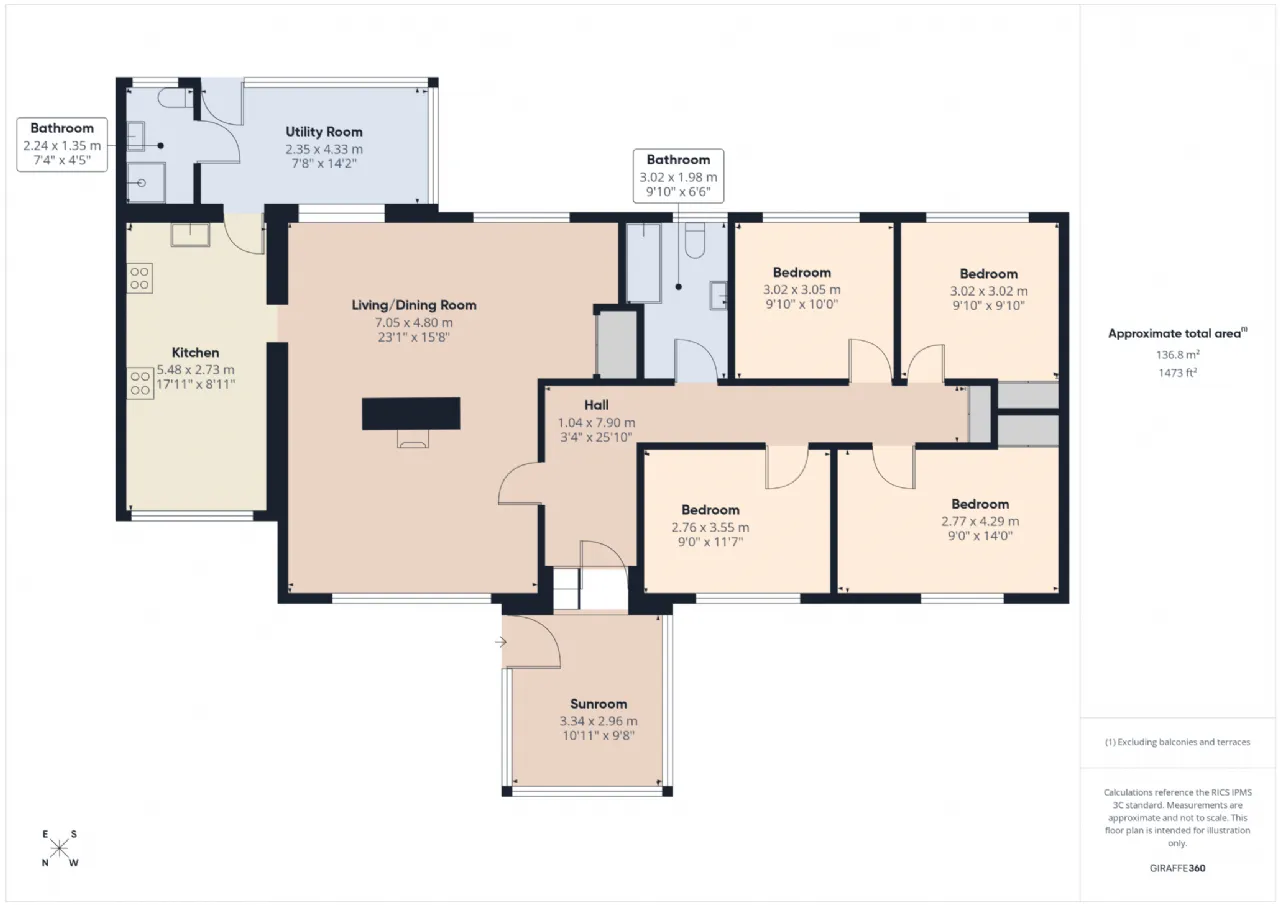 Utility Room 2.35m x 4.33m Tiled floor; plumbed for washing machine/dryer.